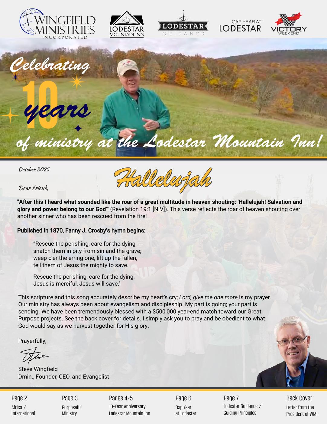 God has blessed this ministry in such amazing ways this year. Through your prayers and generosity, He has enabled us to minister to our local community, to communities in multiple states in the US, and internationally in African countries. We are poised to expand our reach in 2026 and beyond through retreats at the Lodestar Mountain Inn, Victory Weekend events, the Lodestar Guidance and Guiding Principles character-building curricula, our Gap Year at Lodestar program, and our International/Africa ministry. We value your prayers and support as we strive to fulfill the Great Commission through evangelism and discipleship.